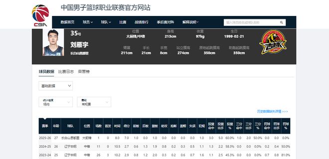 离开辽篮前的最后一个赛季,刘雁宇场均可获得10.5分钟的出场时间,场均仅能为球队贡献2.7分1.9篮板。