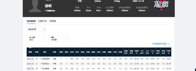 离开广东队的最后一个赛季,徐昕场均可为球队贡献4.7分2.8篮板0.3抢断1.2盖帽。