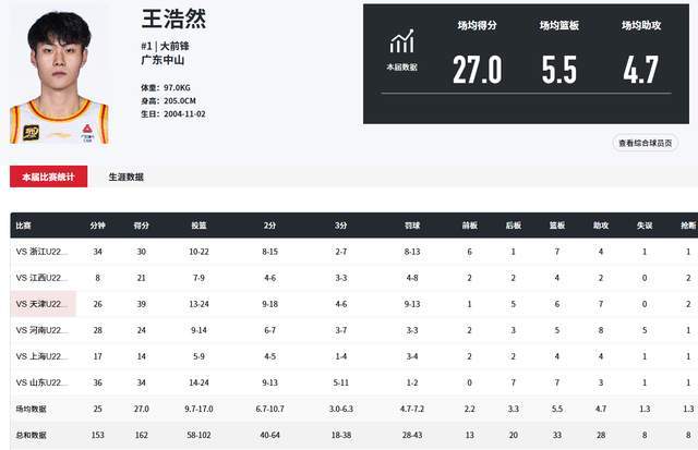 小组赛首秀,王浩然就有上佳表现,对阵浙江队,他爆砍30分7篮板4助攻1抢断2盖帽,命中2记三分球。