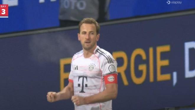 此役客场对阵海登海姆,凯恩在比赛下半场伤停补时阶段打入一球。